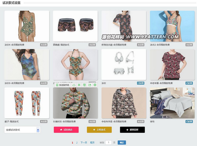 為了體現(xiàn)不同的面料花型、印花圖案在服裝、家紡、圍巾、箱包、泳裝、床品、鞋子的真實試衣感覺,我們都希望有一款軟件可以模擬花型在產(chǎn)品上的真實感覺,以下為你介紹的,就是這樣一款試衣套款工具,可以媲美任何的試衣軟件。有多套模版,針對不同的客戶進行試衣。而且,最重要的是:免費!免費!免費!。。ㄖ匾氖虑檎f3遍。)此文章主要介紹試衣間的在線試衣、套款功能。如需了解在線配色功能,在瀏覽此連接文章。http://www.ypattern.com/viewarticle.aspx?id=76